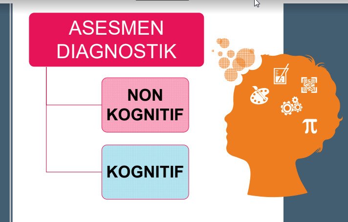 Assesment Diagnostik dibedakan menjadi 2 jenis : Non Kognitif dan Kognitif. Assesmen non kognitif yaitu Bertujuan untuk mengukur aspek psikologis dan kondisi em osional dari peserta didik sebelum memulai pembelajaran, lebih menekankan pada kesejahteran psikologis dan emosi peserta didik. Dilakukan di awal pembelajaran, dengan mengisi google form, bisa dikoordinir oleh wali kelas, kemudian hasilnya bisa disampaikan ke masing-masing guru pengajarnya.