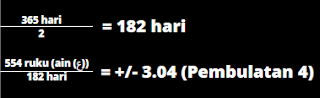 Dalam satu tahun kalender memiliki 365 hari. Jika 365 hari menjadi pembagi jumlah 554 ruku (ain (ع)) yang ada pada Al Qur’an, maka bisa dipastikan untuk bisa menghatamkan Al Qur’an satu tahun sekali, kita harus membaca minimal satu hari dua ruku (ain (ع)).