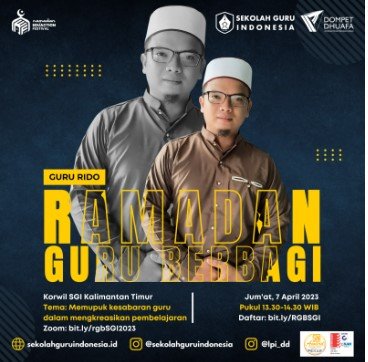 Webinar Ramadhan Guru Berbagi ,Jumat, 7 April 2023 RGB berlangsung pada pukul 13.30-14.30 disampaikan oleh Guru Ridho,kegiatan RGB ini dilaksanakan setiap tahun pada bulan Ramadhan. Banyak yang dapat kita terima ilmu yang dipaparkan oleh guru Ridho tentang Memupuk Kesabaran Guru dalam mengkreasikan pembelajaran.