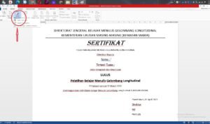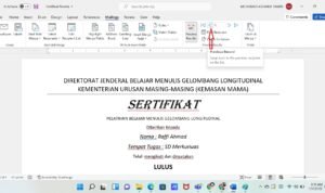 Jika data peserta sudah selesai tutup file tersebut. Langkah selanjutnya kembali ke file “sertifikat” lalu klik menu “Mailling” pada lembar kerja word.