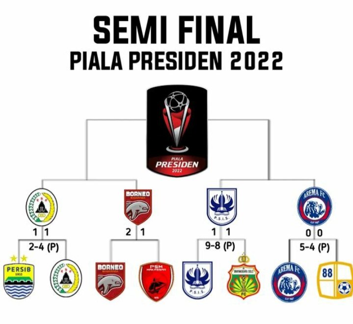 Babak Semi Final Piala Presiden 2022 akan berlangsung dalam dua Leg atau menggunakan sistem home and away.