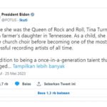 Presiden Biden merilis pernyataan turut berduka untuk keluarga Turner, termasuk suaminya, Erwin, juga kepada penggemar di seluruh dunia atas kepergian perempuan yang mereka setuju sebagai “yang terbaik”.