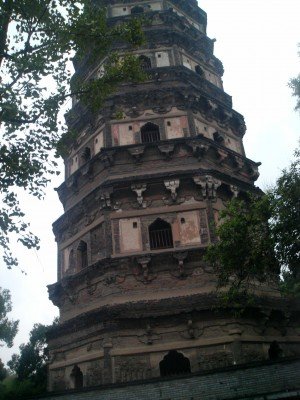 Ketika tour hampir berakhir, masih ada satu tempat yang akan kita kunjungi, namun kita harus membeli sendiri tiket masuk sebesar 60 Yuan, karena yang tadi pagi kita bayar belum termasuk tiket ini. Seorang penyair dinasti Sung pernah berkata akan menjadi penyesalan seumur hidup bila anda berkunjung ke Suzhou tapi tidak mampir di Hu Qiu. Karena itu saya pun ikut masuk walaupun kaki sudah mulai merasa lelah dan tetap terpana dengan keindahan pagoda miring di atas bukit itu. Bagi yang tidak ingin masuk dapat menunggu di sekitar tempat parkir bus. Hari sudah mendekati senja sekitar pukul 4.30 sore ketika kita masuk pintu gerbang dan pagoda Yunyan yang berusia lebih seribu tahun di atas bukit tampak memanggil kita untuk terus naik ke atas.