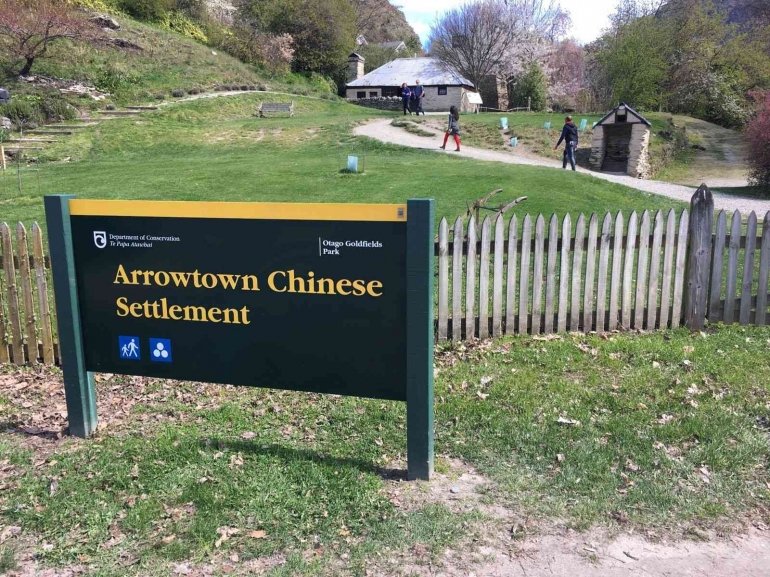 “Welecome to Arrowtown Chinese Sttlement and the story of remarkable people,” demikian judul pada salah satu panel dalam dua bahasa yaitu Inggris dan Mandarin yang mengisahkan bahwa pada sejak akhir tahun 1860-an hingga tahun 1880an, temoat ini merupakan salah satu dari perkampungan kaum imigran dari Tiongkok yang kebanyakan mencari keberuntungan di tambang emas di Kawasan Otago dan Southland. Bahkan disebutkan juga jika pada puncaknya terdapat lebih dari 8000 orang Tiongkok yang bekerja di pertambangan emas dan menghasilkan sekitar 30% dari produksi emas di kawasan itu.