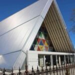 Ini lah gereja yang memiliki nama resmi Christchurch Transitional Cathedral dan sekilas berbentuk mirip sebuah tenda berbentuk huruf A sehingga tidak memiliki dinding yang vertikal. Dari luar terlihat bangunan yang lumayan besar dan cantik dengan dihias banyak kaca pateri berwarna kombinasi merah kuning hijau dan biru di bagian muka dan pintu utama yang terbuat dari kaca.