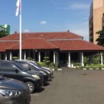 Setelah duduk santai di kursi yang ada di kaki lima di depan Gedung ini, saya kemudian masuk ke halaman dan melapor ke petugas satpam akan berkunjung ke Direktorat Deposit dan Pengembangan Koleksi Perpustakaan.  Dijelaskan bahwa lokasinya ada di Gedung E lantai 7.  Saya kemudian berjalan di halaman yang luas. Banyak kendaraan yang diparkir dan di sisinya ada sebuah bangunan berbentuk bangunan tua dari zaman Belanda yang sangat cantik. Jendela yang besar dan tinggi menjadi ciri khas Gedung dari zaman itu.