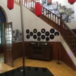 Masuk ke ruang tengah, saya terpesona dengan bentuk tangga yang ada di samping dinding dan di sisi tangga banyak dipajang foto-foto tentang kehidupan Habibie dan Ainun serta juga Sebagian mengenai sutradara Hanung Bramantyo.  Tidak lupa banyak juga bufet dan botol=botol serta piringan hitam yang berbaris rapi di tembok berwarna putih.  Sebagai pemanis digantung banyak lampion warna merah yang menghias langit-langit dan memberikan sedikit nuansa ketionghoaan.
