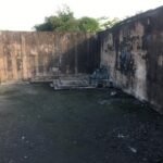 Tembok setinggi sekitar tiga atau empat meter mengelilingi kompleks bangunan tua ini, sementara sebagian besar lantai atau tanah halaman belakang terlihat sedikit lembab dan berair. Harus pandai memilih tempat sebelum melangkah dan di bagian tengah ada bagian yang digali dan berfungsi sebagai saluran air.