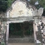 Sebuah pintu gerbang yang cantik namun terlihat antik dan tua menyambut. Pintu masuk berbentuk segi empat sementara di kedua sisinya ada hiasan lubang-lubang berbentuk belah ketupat. Di bagian atas gapura diukir sebuah gambar kala atau raksasa dan juga menggunakan sengkala memet atau gambar untuk menunjukkan tahun.