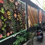 Memasuki gang di di tembok sebelah kiri ada gambar logo kesultanan Yogyakarta dan juga gambar mural motif-motif kain batik yang cantik.  Ada yang bermotif bunga-bunga dan motif lainnya. Selain itu juga banyak kendaraan motor yang parkir. Di sini kendaraan motor juga harus dituntun karena gangnya memang sempit.