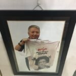 Urip mung mampir ngguyu (Hidup itu Cuma singgah dan tertawa) demikian ada ditampilkan pada sebuah T Shirt bergambar Raminten yang dipegang oleh Hamzah Sulaiman.