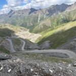 Semakin jauh meninggalkan kota Osh, jalan semakin mendaki dan berliku. Di kanan kiri jalan banyak padang rumput dan juga rumah-rumah tradisional serta tenda tempat suku nomaden tinggal yang disebut Yurt.