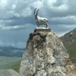 Ada beberapa desa kecil yang kami lewati seperti Lyzyl Korgon, Askaly danUch Tyube sampai akhirnya sekitar menjelang pukul 2 siang, kami tiba di desa Sary-Tash untuk beristirahat dan makan siang. Sebuah patung kambing gunung bertanduk dua menyambut kedatangan kami di desa ini.