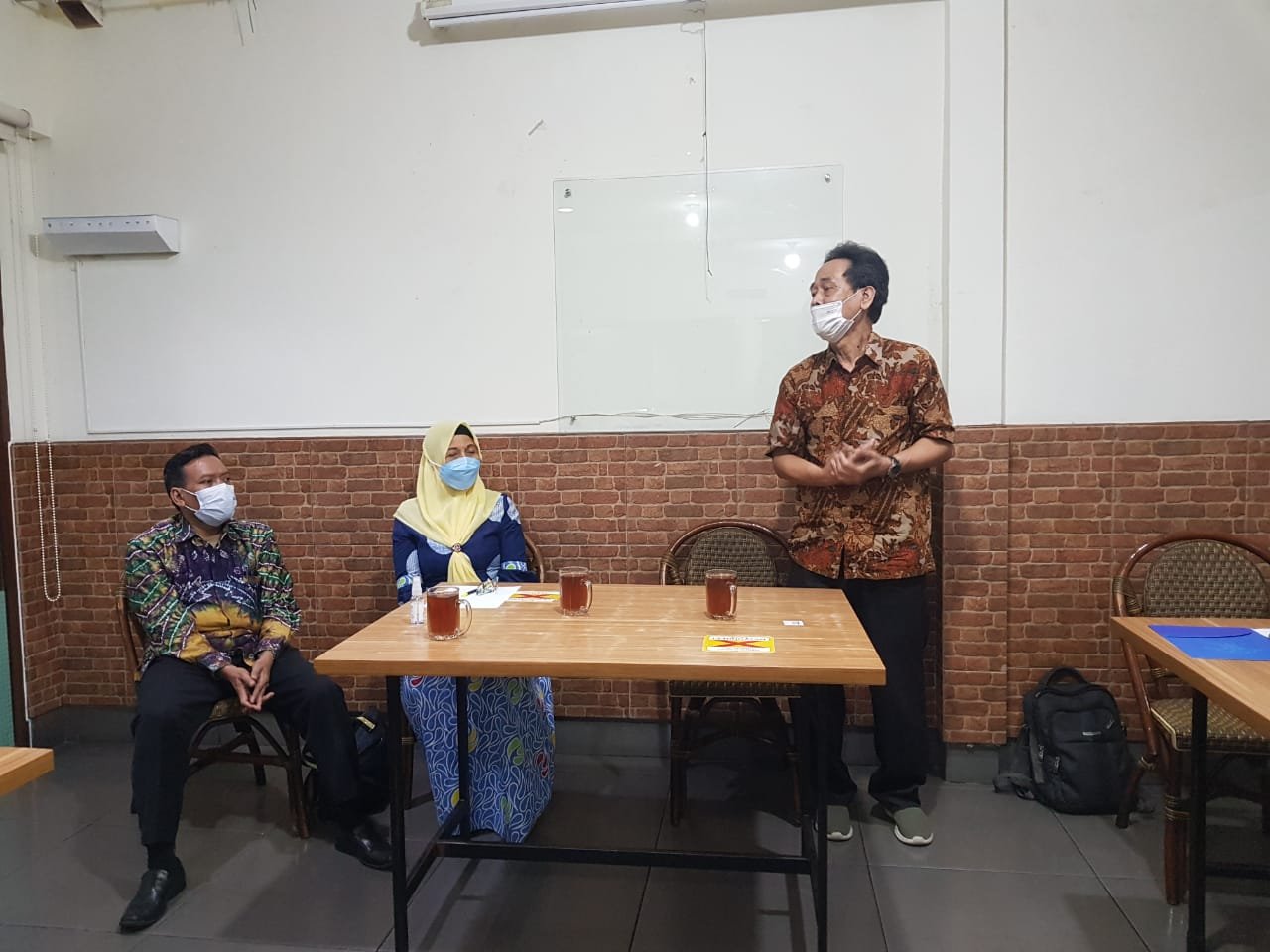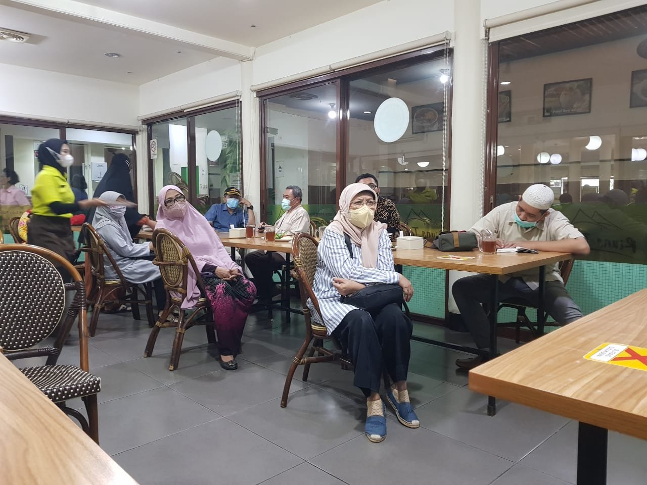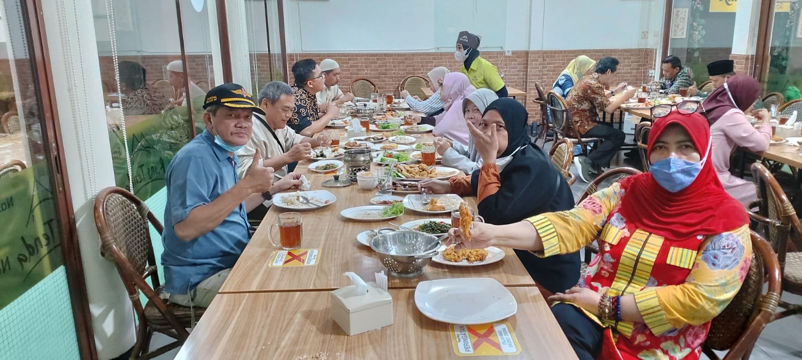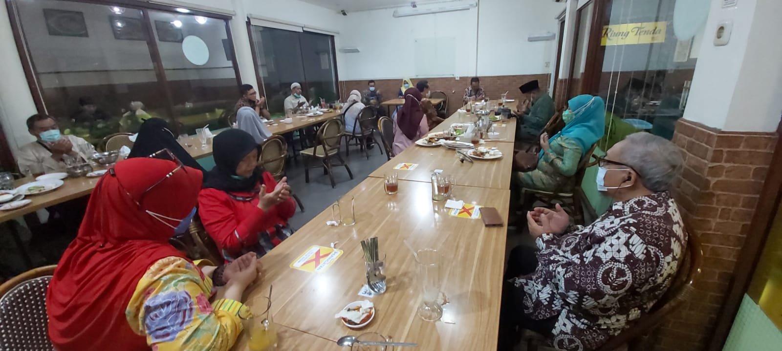 Pertemuan tatap muka wajib mematuhi Protokol Kesehatan memakai masker, jaga jarak serta cuci tangan. Acara terlenggara di Restoran Riung Tenda Jl. Balai Pustaka No 2 Rawamangun Jakarta Timur Pukul 11.00 sd 14.00 WIB. Sebagian besar calon jamaah umroh hadir.
