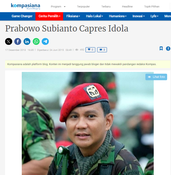 Berikut disampaikan tulisan 13 tahun lalu . Tidak ada yang berubah pada Bapak Ptrabowo Subianto..