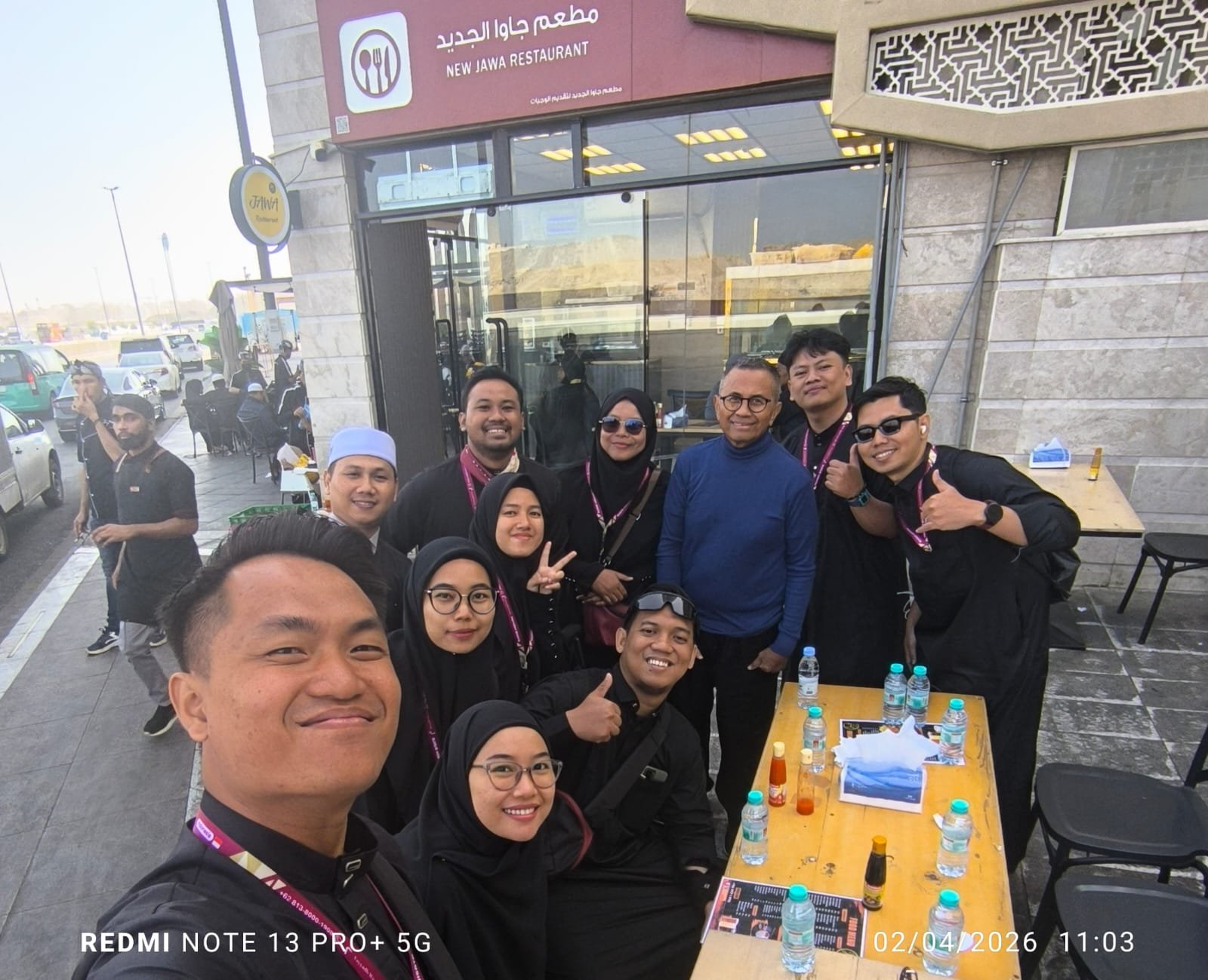 Setelah duduk barulah saya menengok ke papan nama resto itu: New Jawa –sebagai terjemahan dari bahasa Arab di foto.