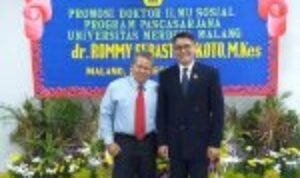 Itulah sebabnya awak bersungguh sungguh menghadiri Sidang Terbuka Program Doktoral dr. Rommy Sebastian, M. Kes. Universitas Merdeka (UnMen) Malang Jawa Timur sebagai salah satu perguruan tinggi tertua tampaknya sangat konsisten dalam ikut mencerdaskan kehidupan anak bangsa. Kompol DR. dr. Rommy Doktor Disiplin Ilmu Sosial ke 265 dan urutan ke 445 Doktor secara keseluruhan di UnMen.