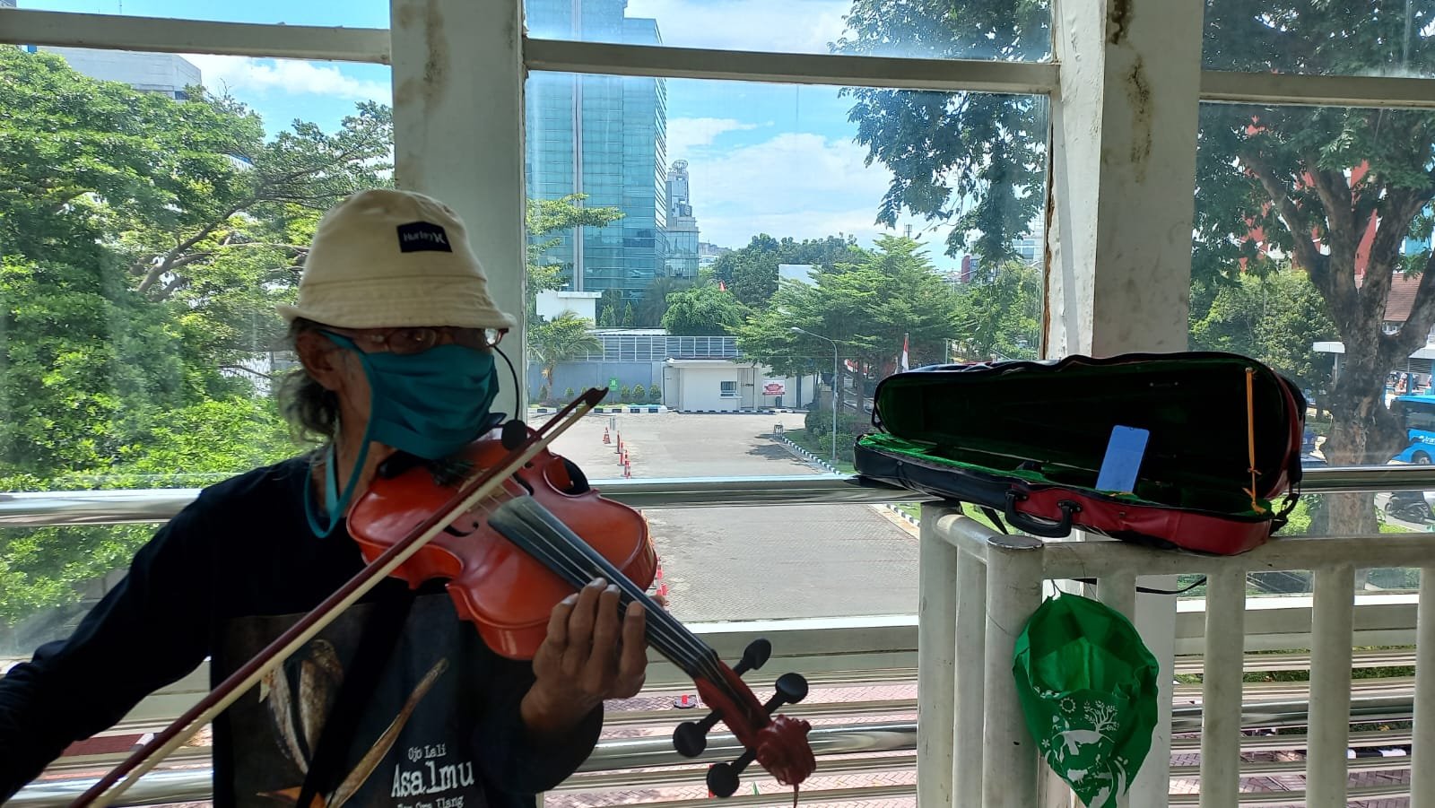 Luar biasa kepiawaian sang maestro pengamen jalanan. Sementara itu terlihat warga yang menyaksikan lagak awak menyanyi diiringi gesekan biola. Ada anak sekolah, ada ibu ibu dan warga lain yang terhenti sejenak di atas tangga menyaksikan (menikmati) penyanyi amatir