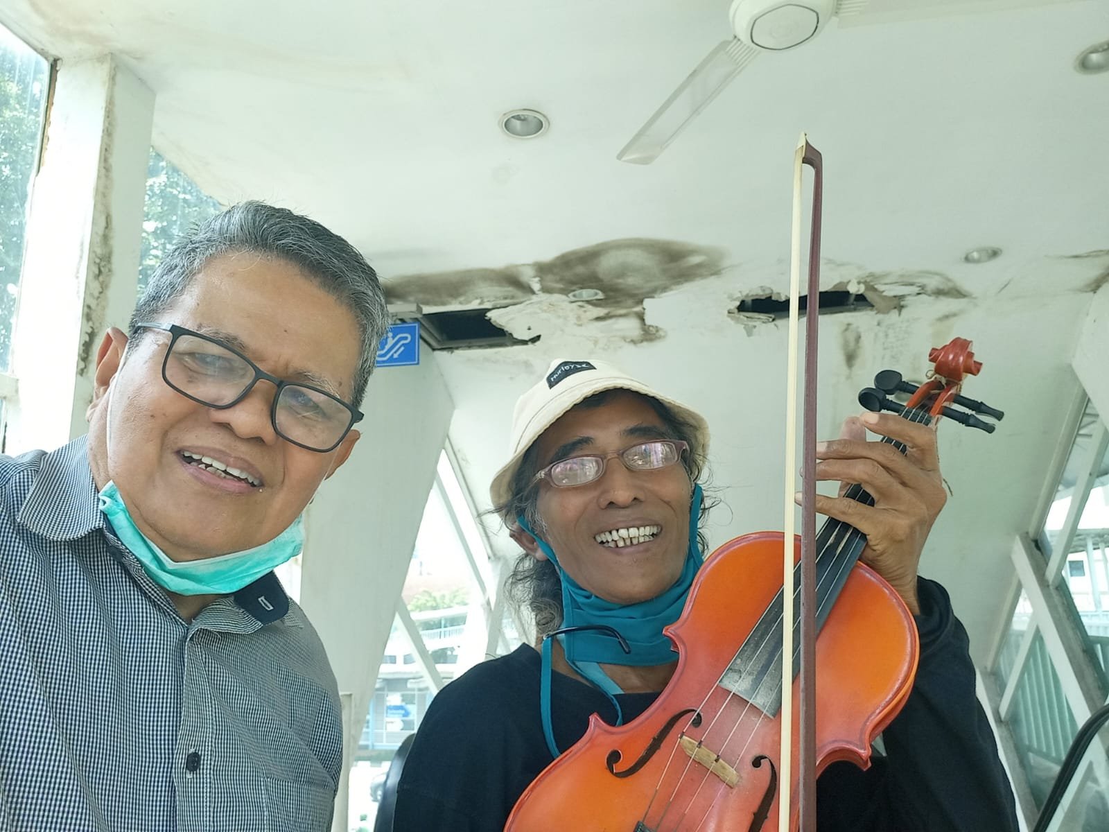 Ketika menaiki tangga diatas tempat berbelok awak bersua dengan seorang pengamen. Tidak seperti pengamen lainnya (yang suka terburu buru) Pak Yadi intelek. Pasalnya Bapak ini menggunakan alat musik langka : Biola.