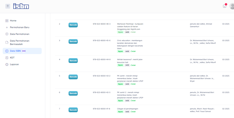 Disamping itu persyaratan sudah tersedia desain Cover depan dan belakang buku. Pengajuan ISBN menyertakan Link Permohonan dari website Penerbit dimiliki YPTD yaitu terbitin.id. Ananda Amalia Muflihat mengajukan permohonan ISBN apabila semua persyaratan lengkap melalui aplikasi Perpusnas.