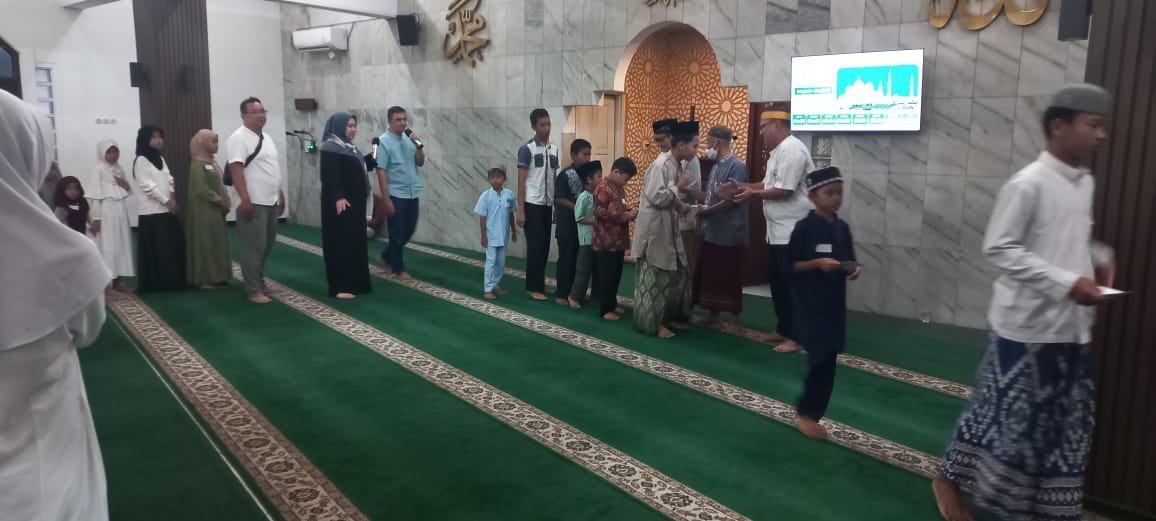 Selanjutnya Acara Festival Ramadan dilaksanalkan penyerahan santunan.  Satu persatu anak yatim menerima santunan dan kemudian diberikan bingkisan.  Tampak rasa bahagia anak anak yatim. Mereka semakin gembira InshaAllah di Hari Raya Idul Fitri karena kepedulian kita semua.