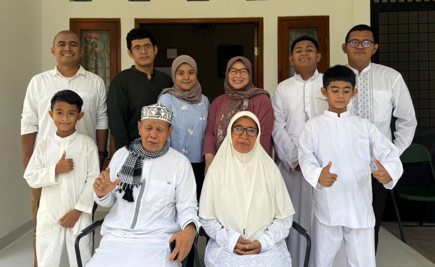 Duduk rapi dalam satu saf bersama anak cucu, mendengarkan khutbah Idulfitri menjadi peristiwa yang amat langka dan membahagiakan.