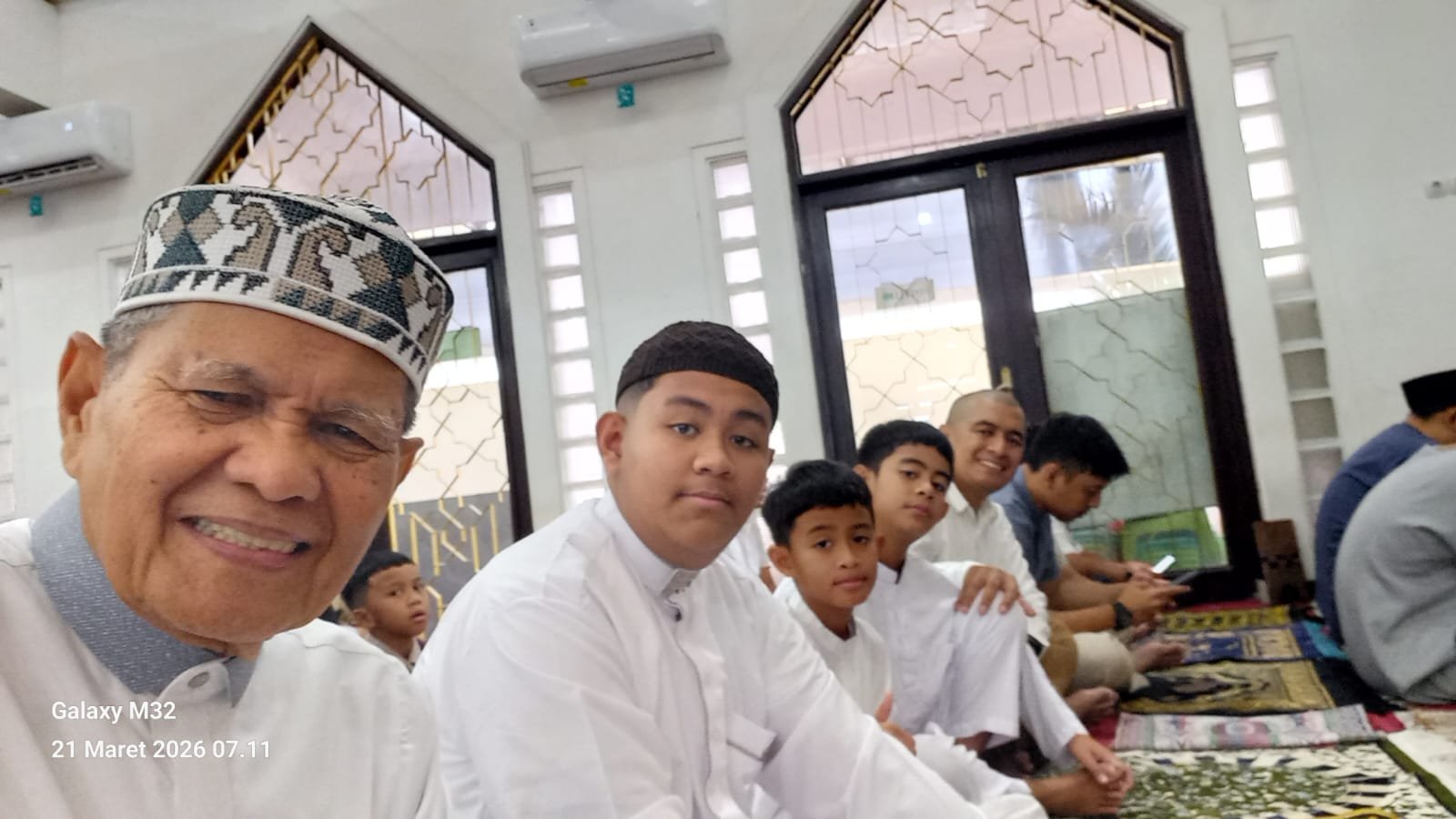 Awak bersama Anada Didit, serta para putra—Azka, Zafran, Alzam berada di bagian dalam Masjid, Ananda Rendi, Fauzan,berada diserambi,   Jamaah  larut dalam suasana kemenangan membaca Takbir.