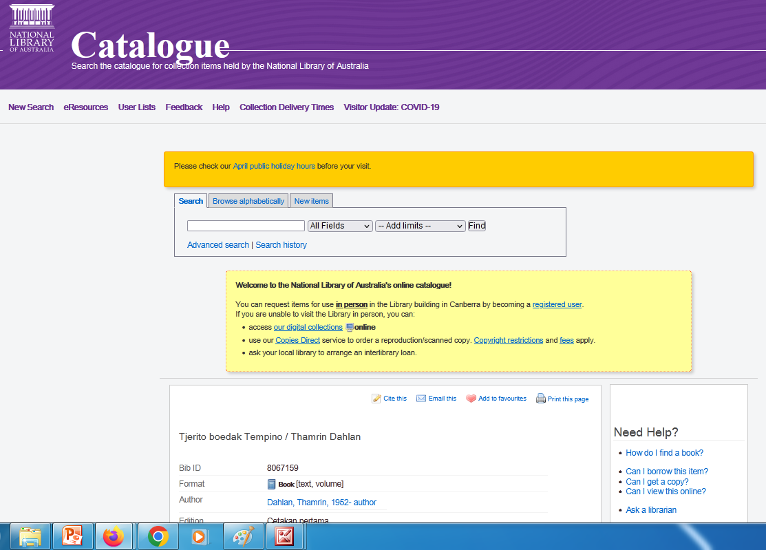 Salah satu buku saya berjudul Tjerito Boedak Tempino entah bagimana cerita tersimpan di Perpustakaan Australia. Saya pikir, “apalah awak ini” Ternyata keajaiban ISBN itu memang nyata.