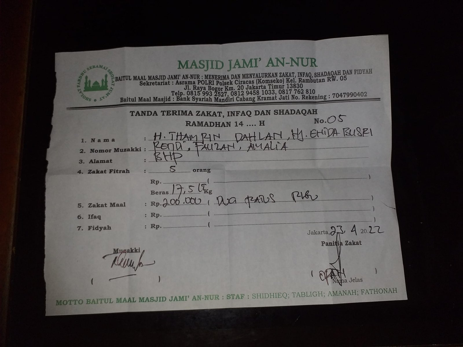 Alhamdulillah amanah Mamak kami laksanakan setiap ramadhan. Termasuk membayar zakat mal berupa zakat harta dan zakat penghasilan pada tahun berjalan sebedar 2.5 persen.
