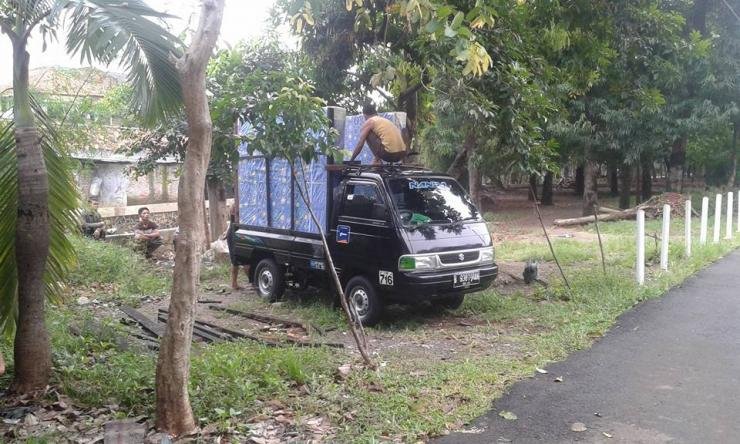 Benar deh pedagang ini awak perhatikan sedang menaruh dan menata 2 tempat tidur besar di atas mobil bak. Tentu kasur busa itu baru karena masih terbungkus plastik