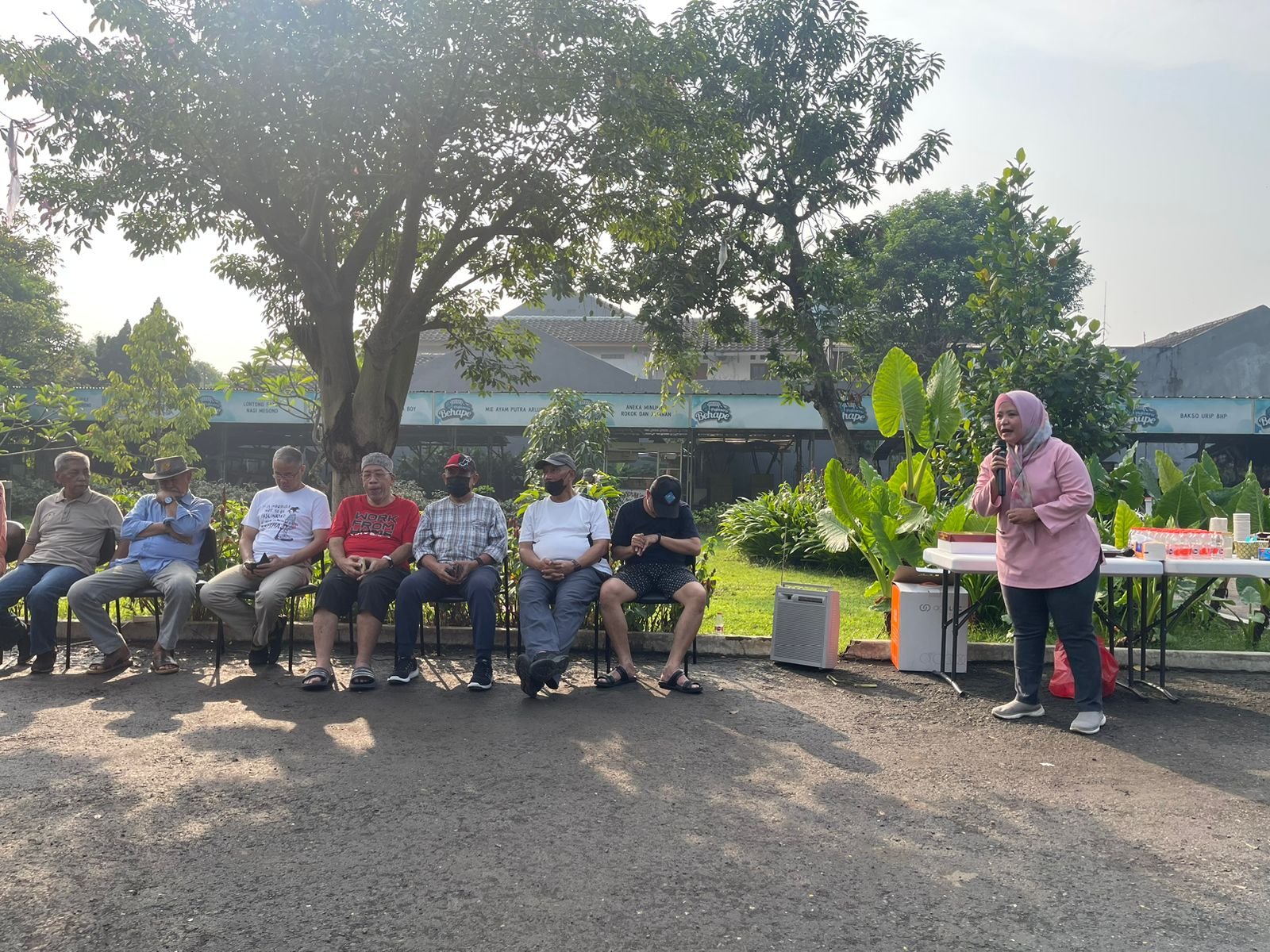 Warga penghuni lama senior generasi pertama BHP tampak menggunakan acara gotong royong ini sebagai ajang silaturahim. Ibu Ibu PKK Tampak Ibu Maman Istri Ketua RT 05, Uni Leni dan Ibu Jarot sibuk menyediakan kuliner sarapan kopi. Kita menjamu Ibu Lurah, Mbak Mega, Pak Joko, Pak Arif stajf Kelurahan Dukuh mitra kerja RW 06.