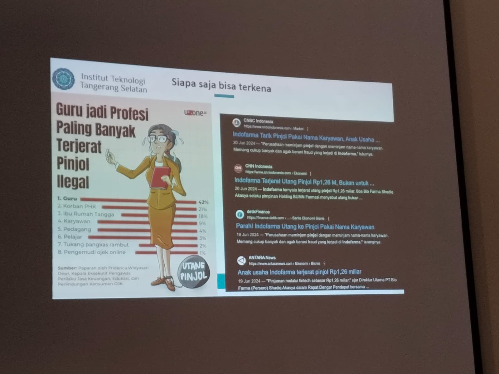 Topik yang diminta OJK dan Komisi XI atau lebih dikhabarkan oleh Penulis ke kahalayak yaitu perihal Pinjol Illegal. Nara Sumber tunggal Agung Budi Prasetio, ST, M.Eng, Ph.D dari Institut Teknologi Tanggerang Selatan memaparkan Bahaya Penyalahgunaan Data Pribadi Dalam Pinjaman Online. Terkit situasi dan kondisi by data akurat tentang mudharat dan manfaat pinjol.
