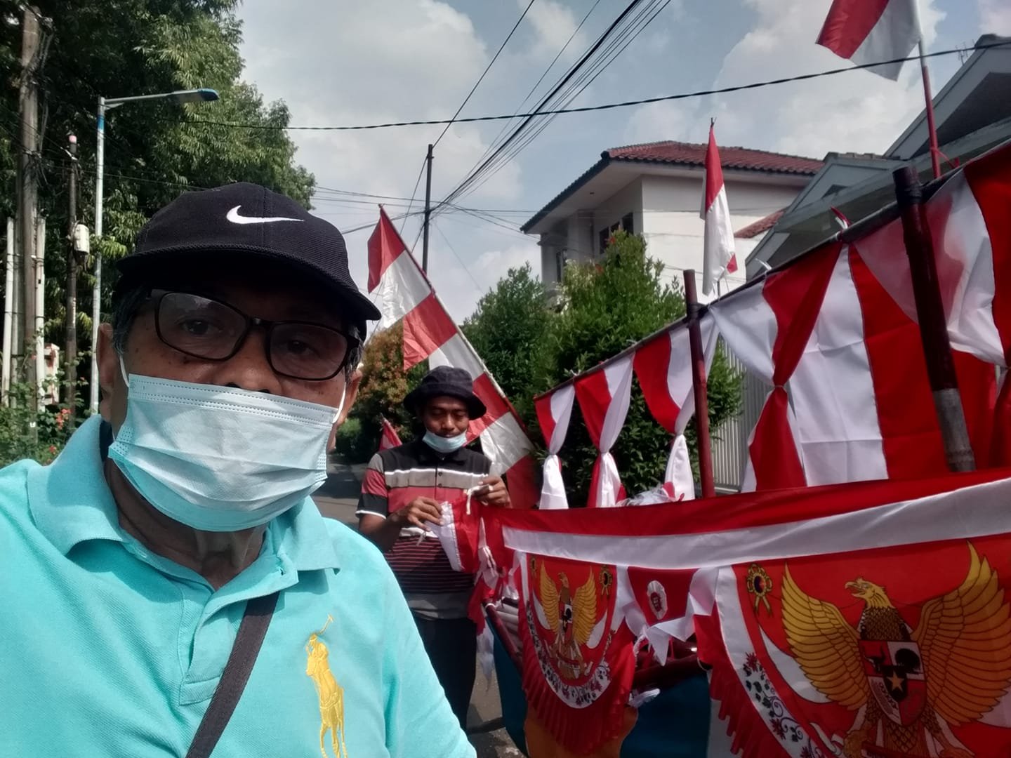Tanto kali ini menjadi seorang penjual Bendera Merah Putih Keliling. Gerobak dorong penuh dengan berndera segala macam ukuran. Lengkap pula dengan potongan bambu untuk menegakkan sang bendera. Lumayan hasilnya asal mau keliling dari perumahan ke perumahan Jakarta menjelang 17 Agustus 2021.