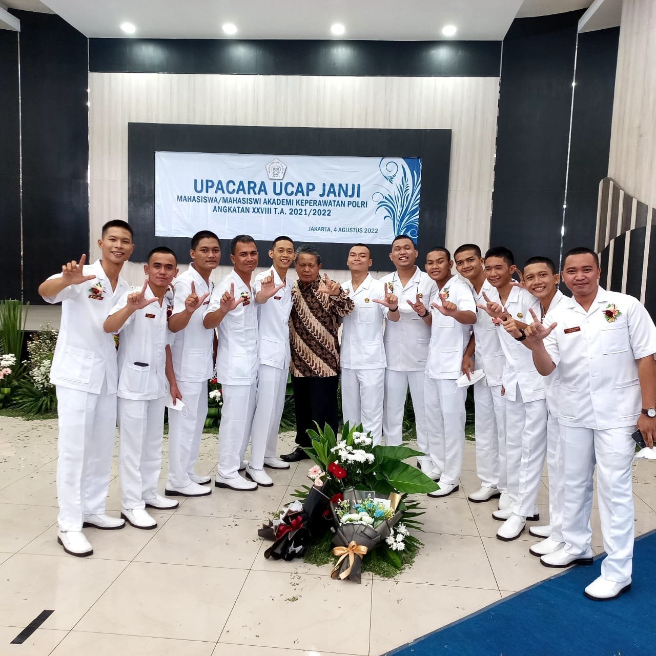 Upacara Ucap Janji Mahasiswa Akademi Keperawatan Polri Angkatan 28 2021/2022. Acara dilaksanakan  Kamis 4 Agustus 2022 di Gedung Ardhya Loka Halim Perdana Kusuma Jakarta Timur.