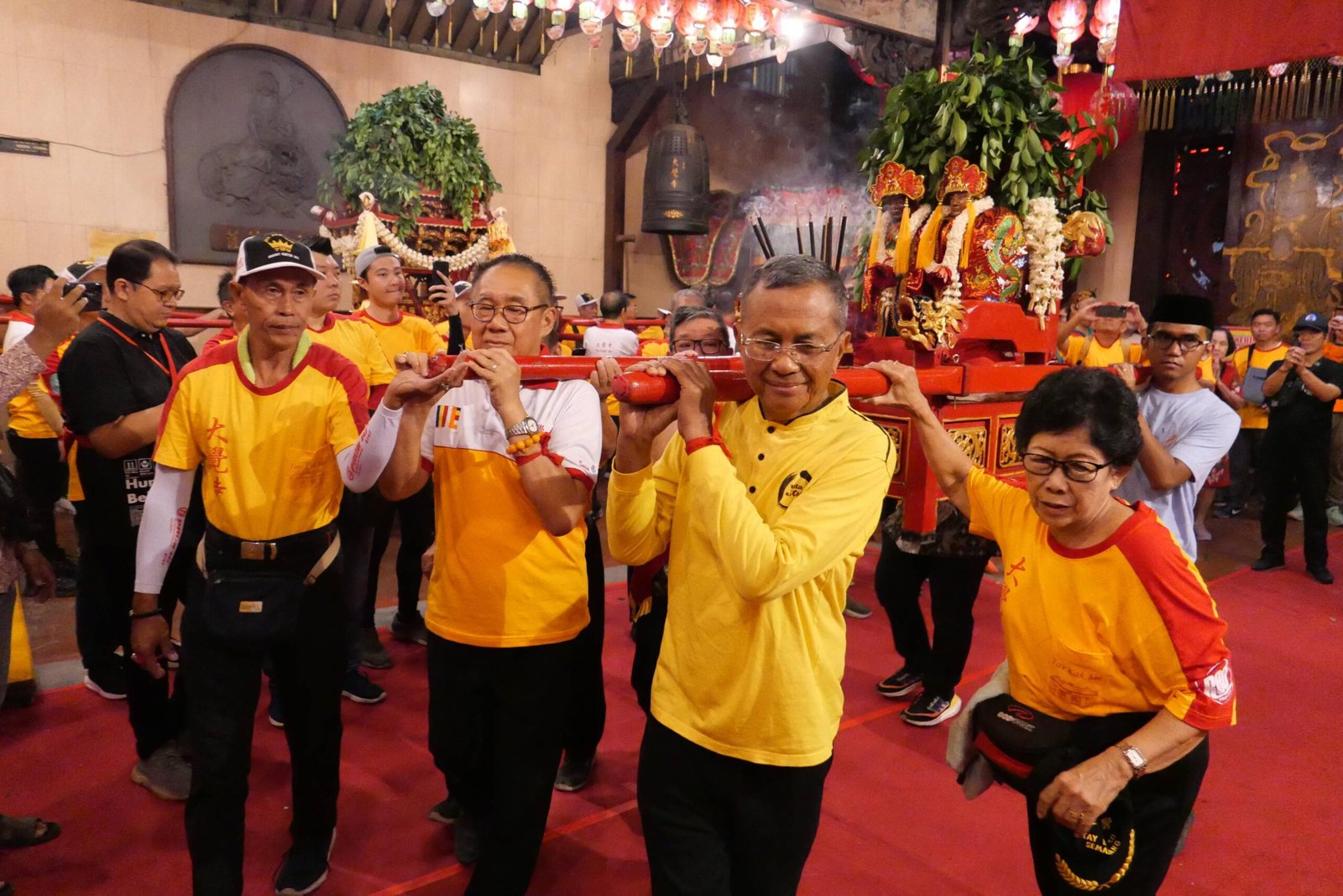 Yang diarak adalah Dewa Cheng Ho. Juga, abu dari Kelenteng Tay Kak Sie. Itulah abu hio yang dibakar di kelenteng itu selama setahun. Abu ditaruh dalam satu bejana. Bejana ditaruh di dalam tandu. Tandu dipikul empat orang.