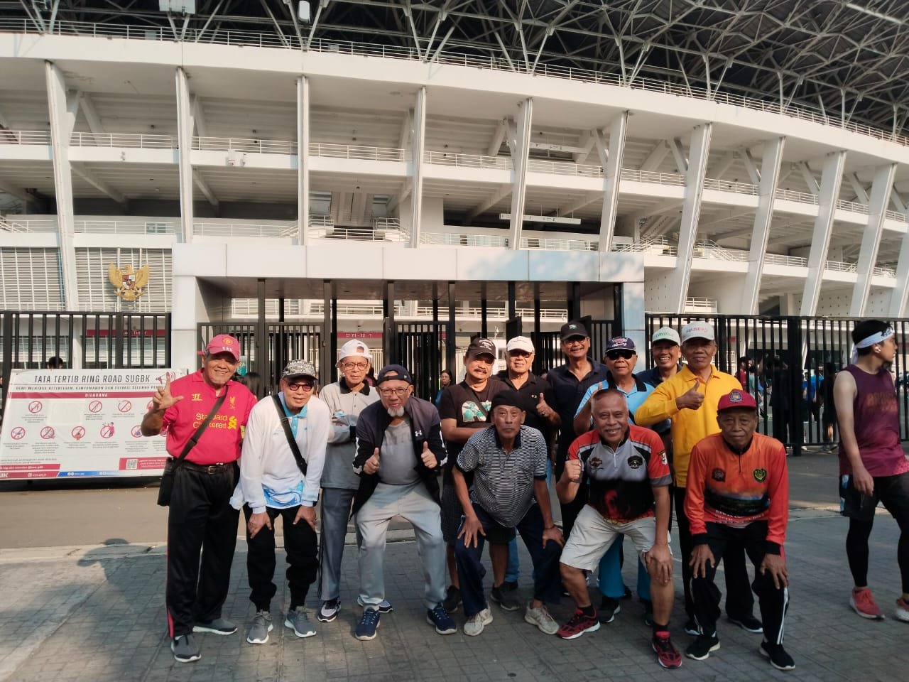 Akhirnya keinginan terwujud. Sabtu 19 Juli 2024 berangkat dari Kelurahan Dukuh berkendara 3 mobil. Berangkat Pukul 07. 00. rencana berkumpul di titik pintu utama GBK. Namun rencana itu berubah karena sulit mencari tempat parkiran mobil. Terpaksa parkir terpencar jauh .