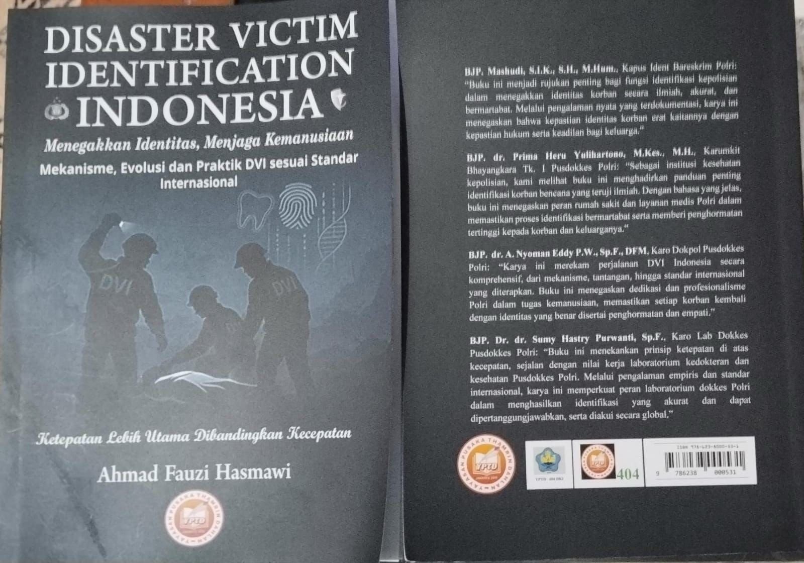 Buku Disaster Victim Identification Indonesia menyajikan kajian ilmiah sekaligus praktis mengenai prosedur, metode, dan tantangan dalam proses identifikasi korban bencana (Disaster Victim Identification/DVI) di Indonesia.