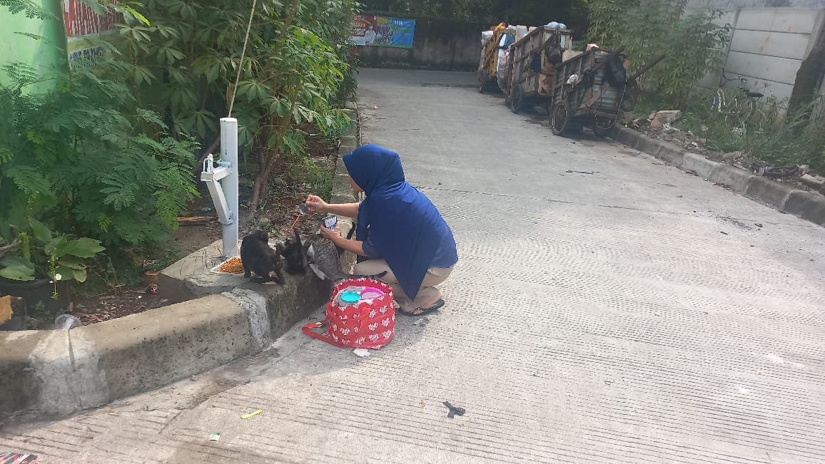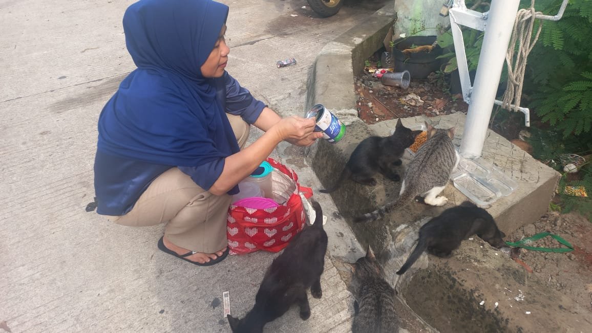 Beliau datang dengan sedan putih dan mampir ke beberapa titik. Melihat itu, saya merasa semangat saya ikut tumbuh. Ternyata cukup banyak pecinta kucing di sekitar lingkungan ini.