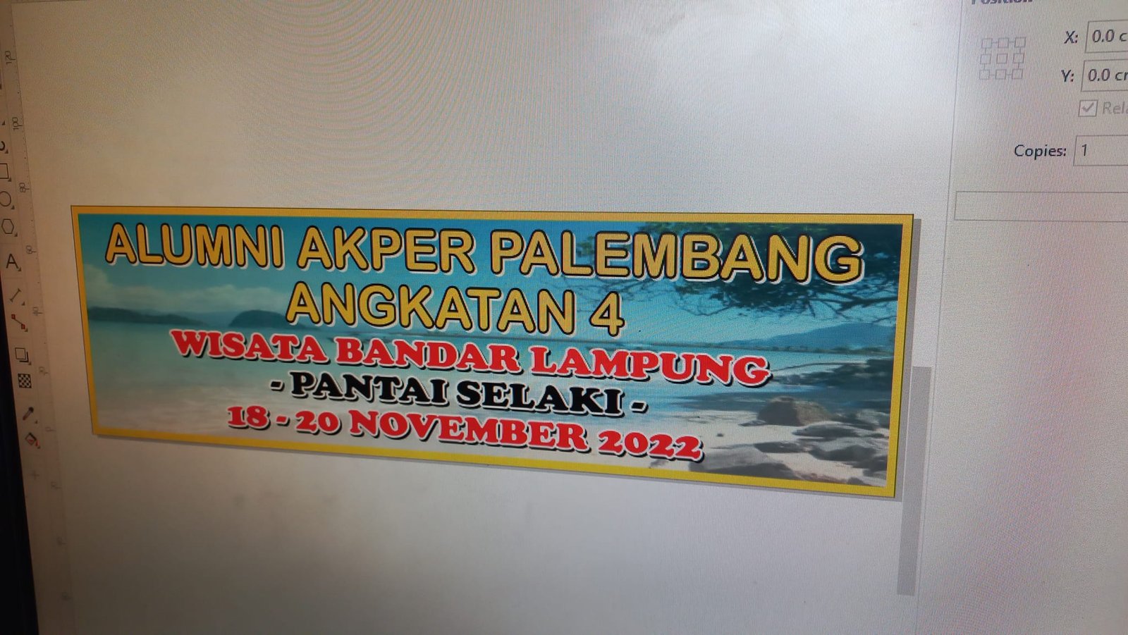 H – 2 menjelang Wisata ke Bandar Lampung. Segala persiapan sejak sebulan lalu sudah di bagi bagi tugas. Awak kebagian menyiapkan spanduk. Wisata Alumni Akper Palembang Angkatan 4 pada tanggal 18-20 November 2022.