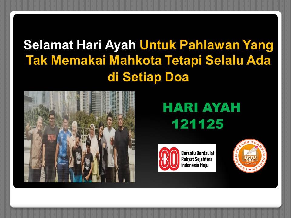 Saya akan ganti ucapan Hari Ayah Nasional sebelumnya yang ber logo PKS. Bersyukur di YPTD berhimpun sobat penulis yang memiliki talenta di bidang masing masing. Satu hal yang mengharukan dan paling penting teman teman mewakafkan keahlian itu sepenuhnya untuk Literasi Indonesia.