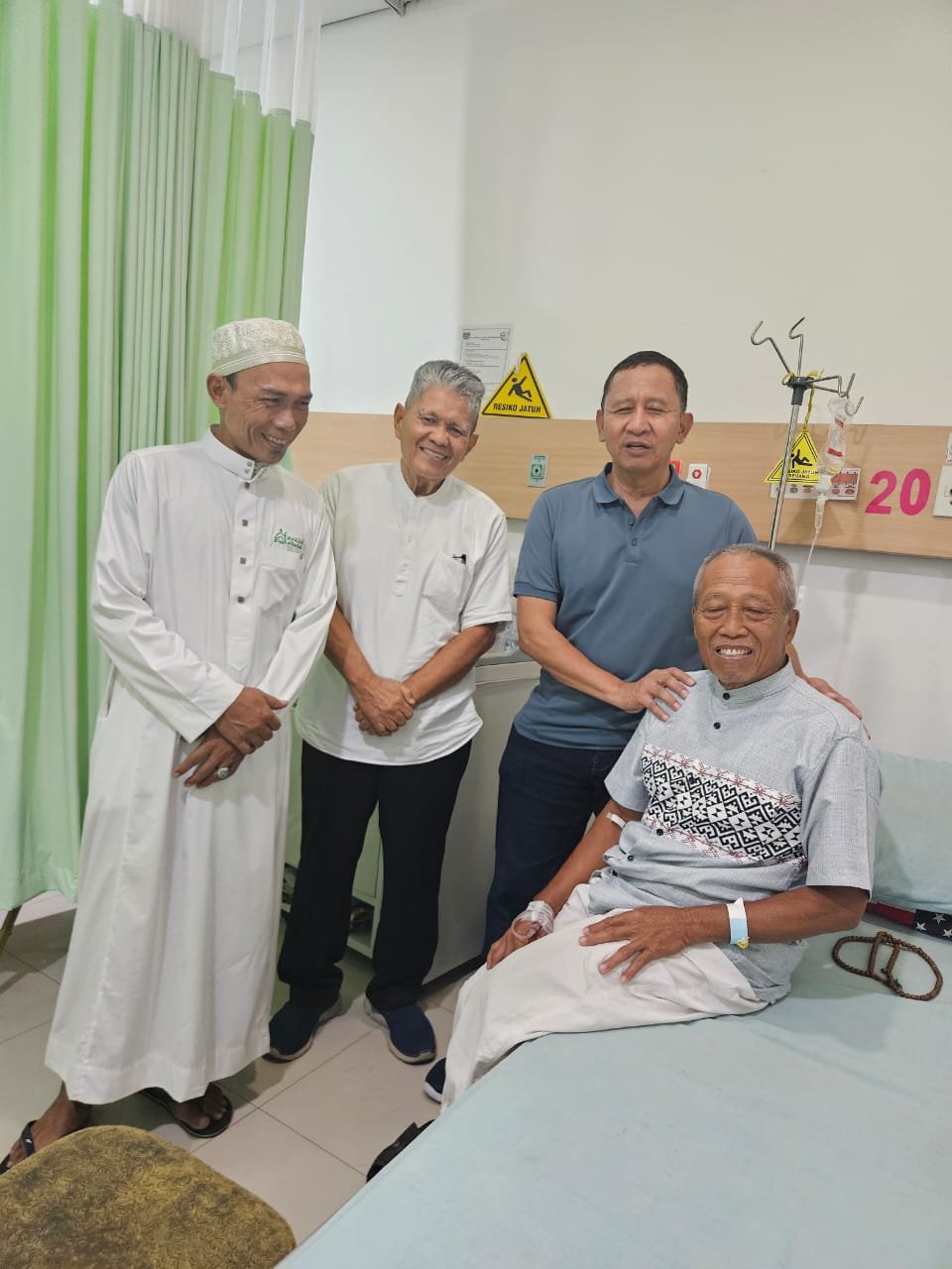 Niatnya satu: Bezoek sahabat kami Pak Tukiman, yang dirawat karena kelelahan sepulang dari kampung. Semangat gotong royong di desa rupanya membuat beliau lupa usia. Alhamdulillah, kondisinya telah membaik—tersenyum, bercerita, dan tampak jauh lebih segar. Menurut putrinya, insya Allah hari itu Bapak diperbolehkan pulang.