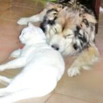 keterangan foto: Anjing peliharaan kami dengan seekor kucing ,saling berkasih kasihan /dokumentasi pribadi