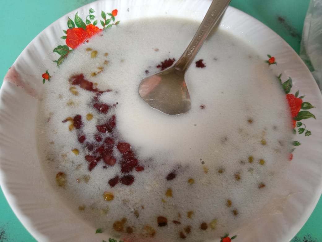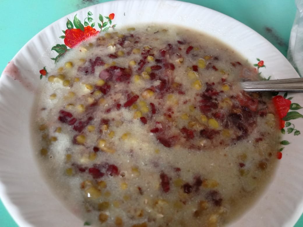 Inilah Penampakan Bubur Kacang Hijau dicampur ketan hitam yang belum diaduk santannya