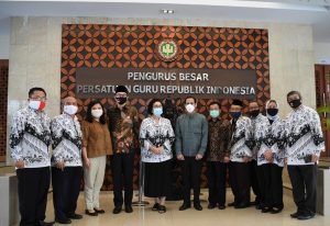 Menteri pendidikan, kebudayaan, riset, dan teknologi, bapak Nadiem Makarim, telah berkunjung ke Gedung Guru Indonesia (GGI). Liputannya, dapat anda baca di Menteri Pendidikan dan Kebudayaan RI Berkunjung ke Gedung Guru Indonesia — Pengurus Besar PGRI . Menteri Pendidikan dan Kebudayaan RI Nadiem Makarim berkunjung ke kantor Pengurus Besar PGRI di Gedung Guru Indonesia, Tanah Abang III Jakarta Pusat, Jumat pagi. (4/9/2020). Senang sekali mas menteri berkunjung ke PGRI. Bangkit guruku, maju negeriku. Indonesia tangguh, Indonesia tumbuh.