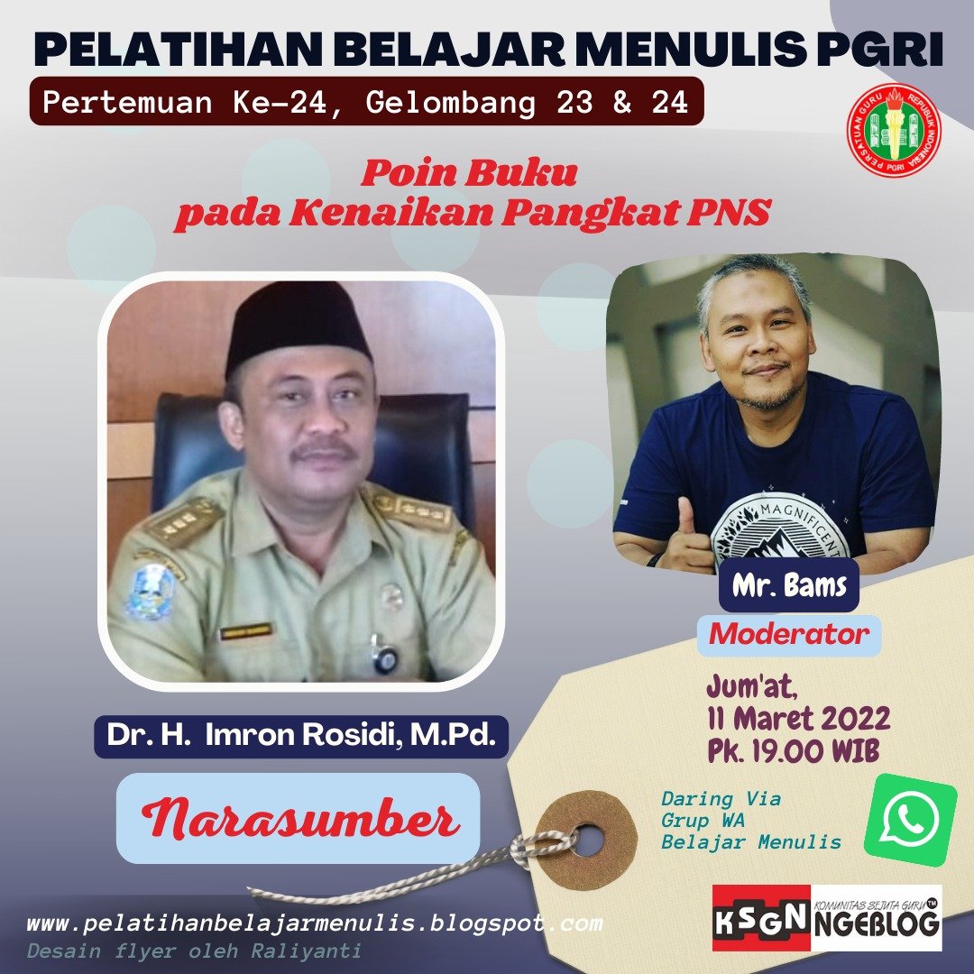 Nanti malam kita akan belajar menulis bersama pak imron rosadi. Ayo ikutan bergabung bersama kami di PGRI.