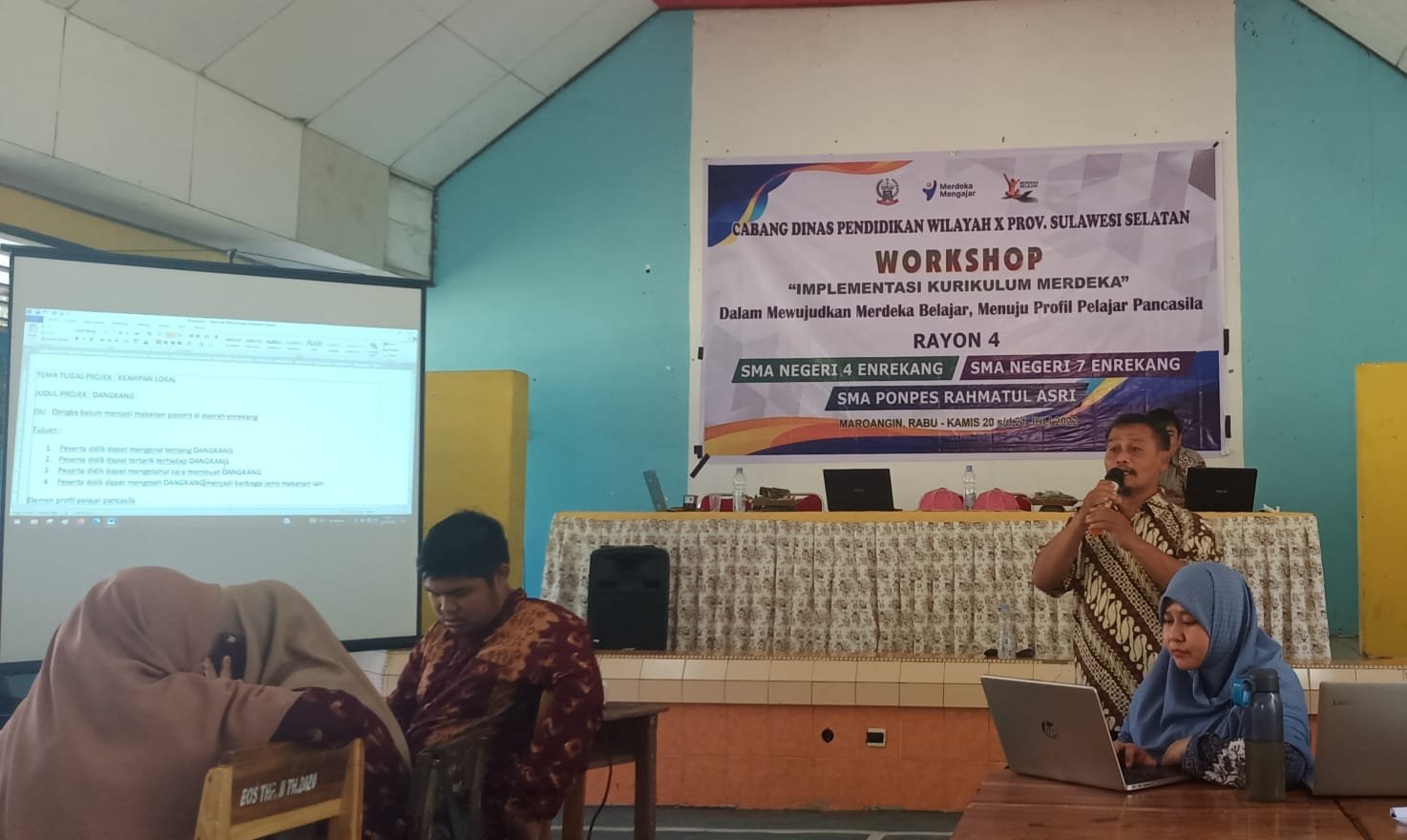 Workshop Implementasi Kurikulum Merdeka (IKM) hari kedua yang berpusat di SMAN 4 Enrekang, Maiwa, Enrekang memiliki keunikannya sendiri. Salah satu keunikan yang menonjol adalah peserta IKM dari tiga sekolah yang hadir (SMAN 4 Enrekang, SMAN 7 Enrekang dan SMAS Pesantren Rahmatul Asri) sangat antusias dan setia mengikuti kegiatan.